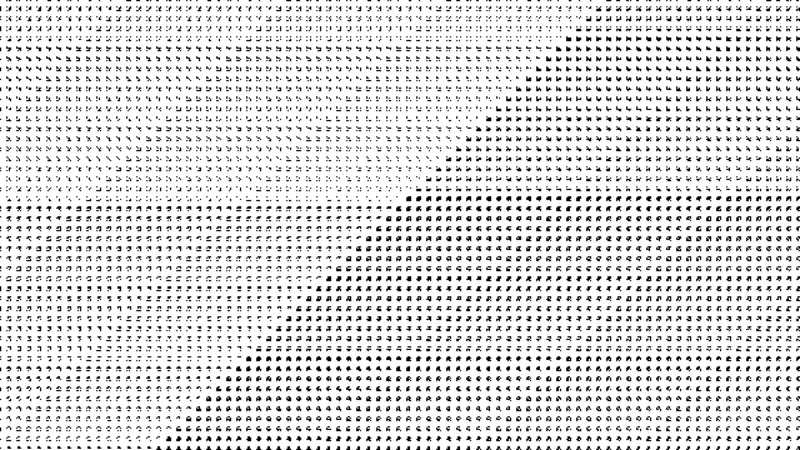 Sur une grille de 4x4 pixels en noir et blanc le nombre d’images possible est de 65 536. Un outils ligne collaboratif permet d’ajouter des mots clefs aux formes qui par leur minimalisme appellent souvent à des interprétations variées.